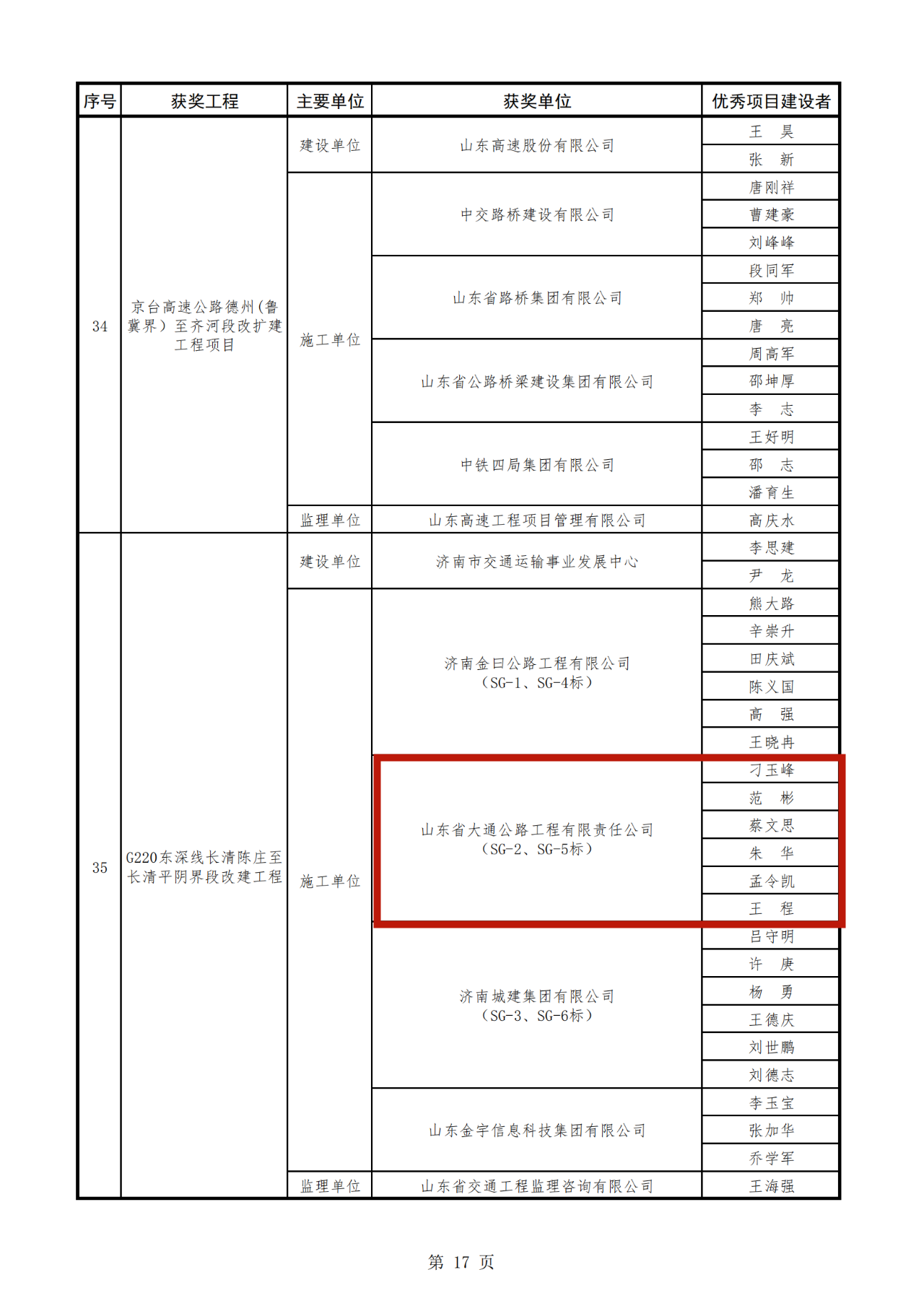大通建设集团荣获公路交通优质工程奖(李春奖)