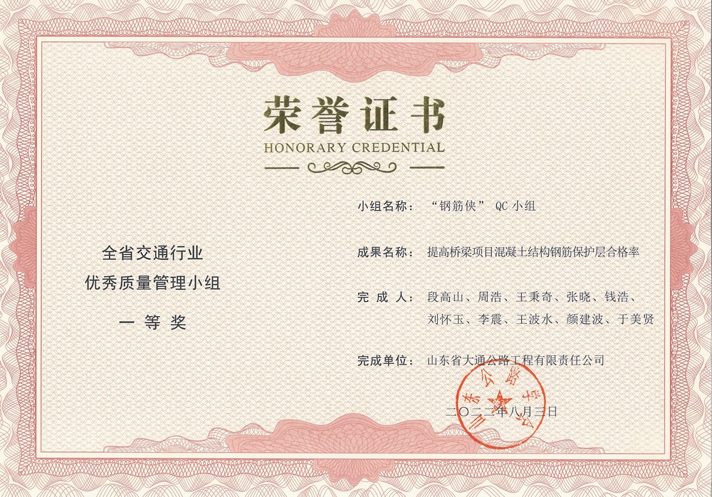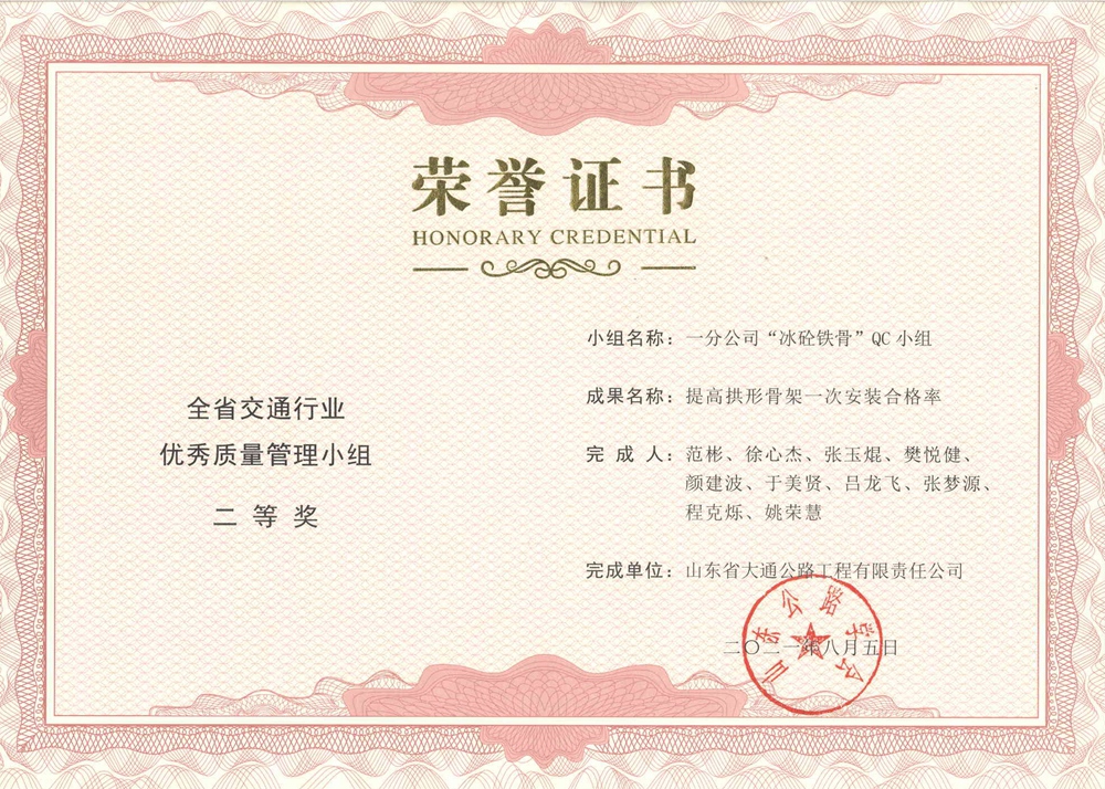 “冰砼铁骨”QC小组-全省交通行业优秀质量管理小组二等奖