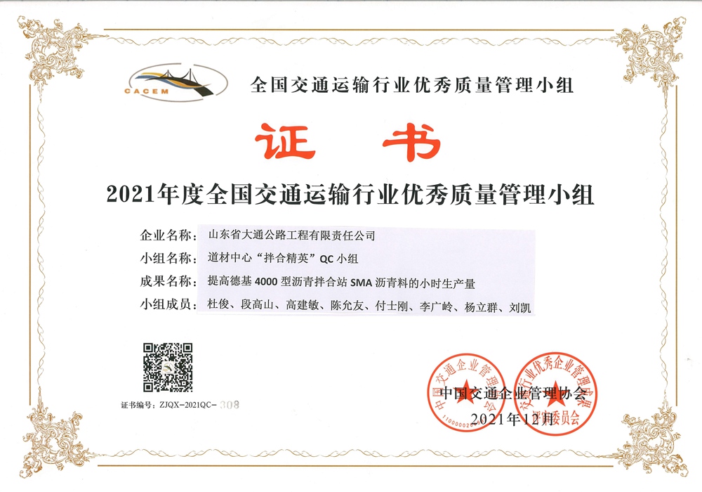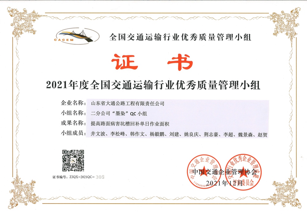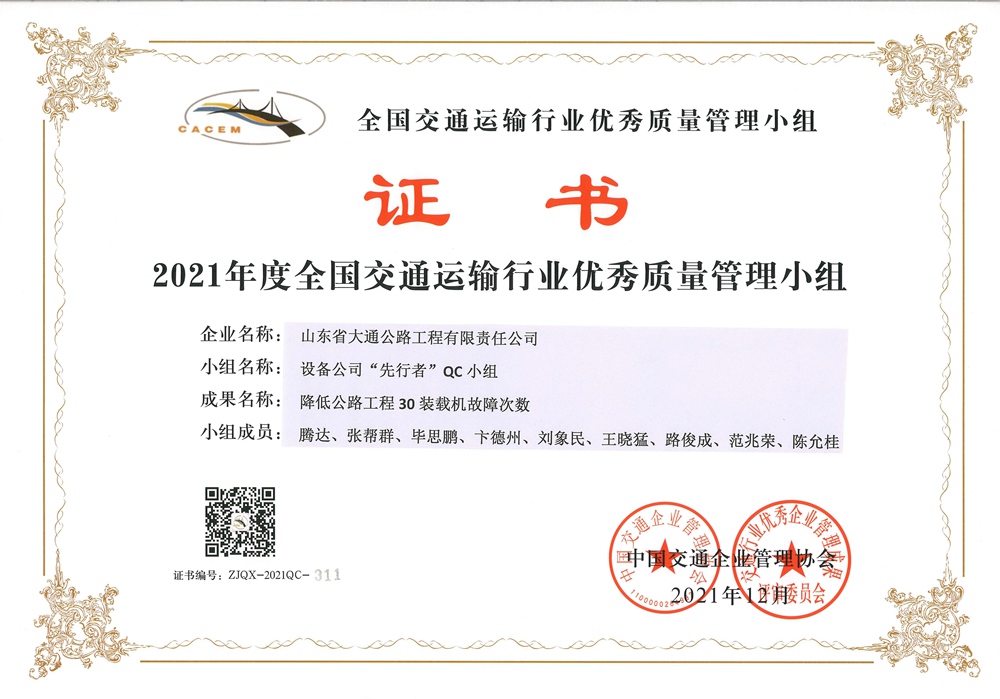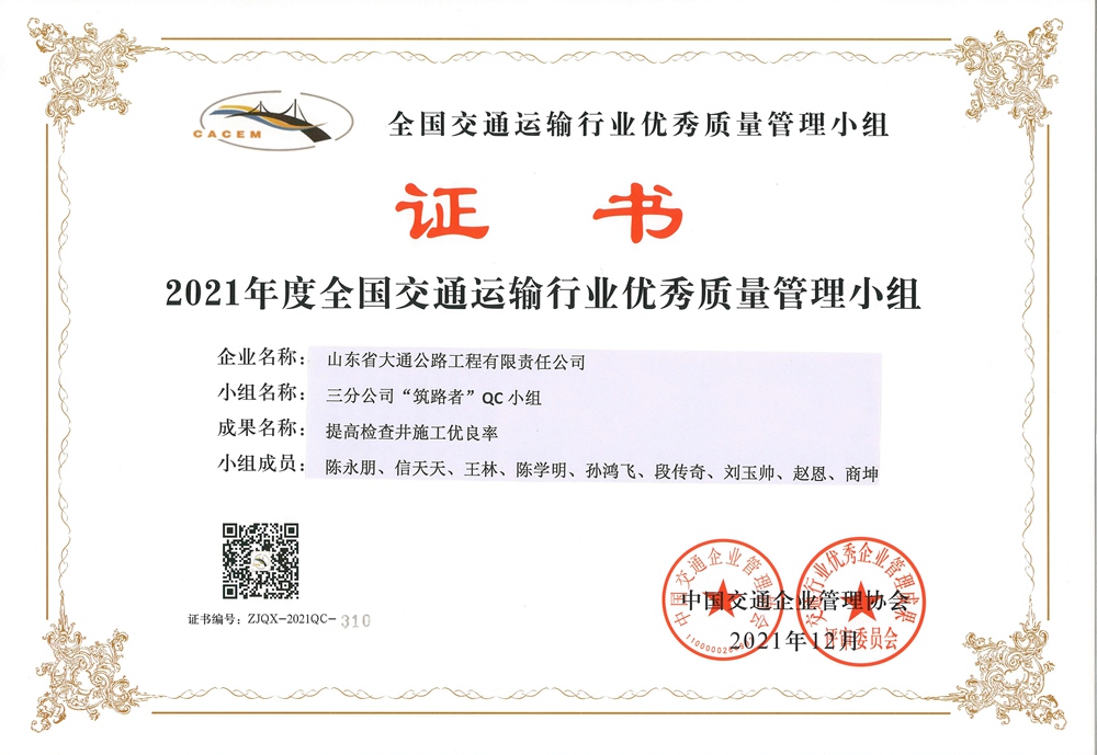 “筑路者”QC小组-2021年度全国优秀质量管理小组