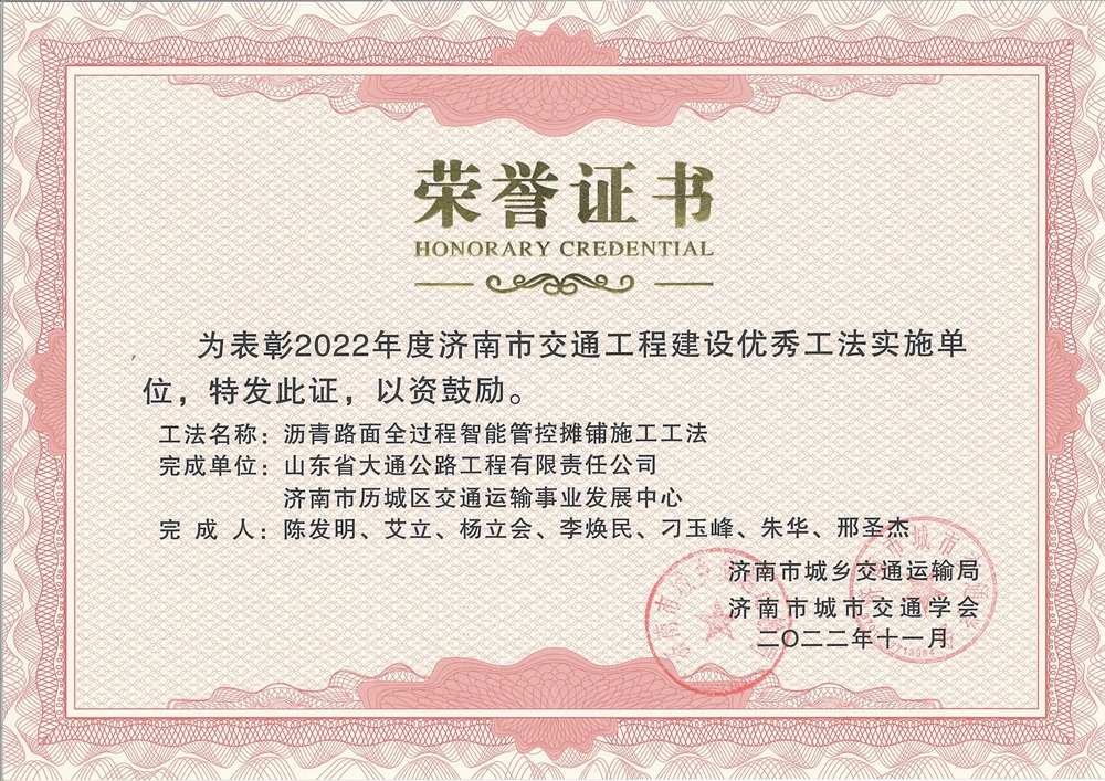 2022年度济南市交通工程建设优秀工法
