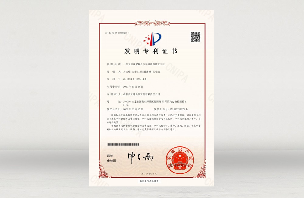 发明专利-无尘灌浆复合抗车辙路面施工方法